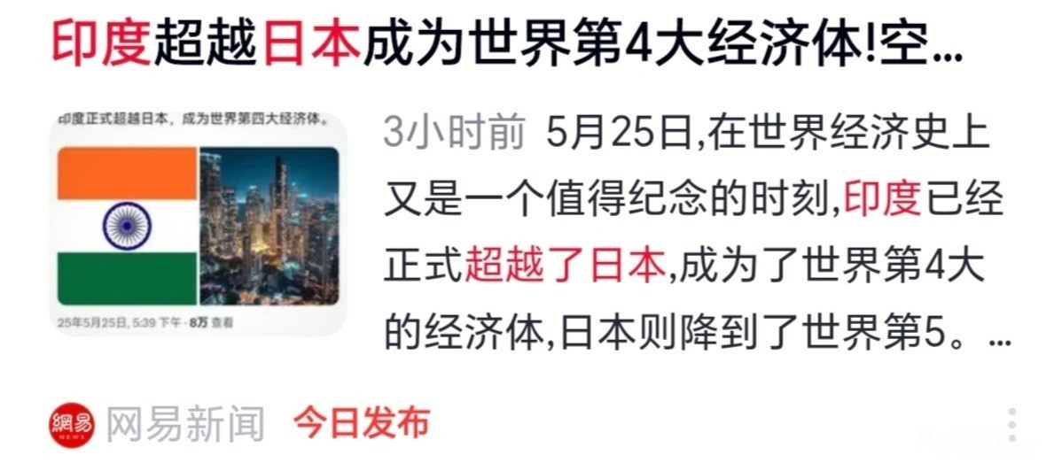 昨天印度正式宣布经济规模首次超过日本