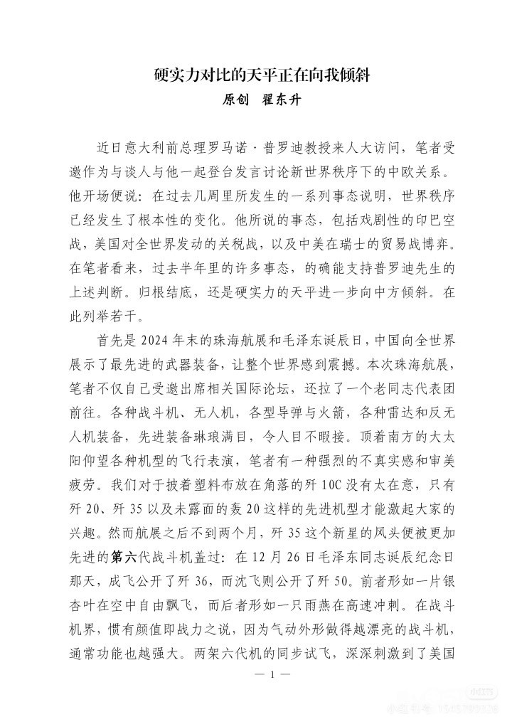 翟东升教授关于中国国际形势的最新文章
