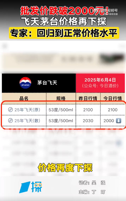 » 飞天茅台批发价跌破2000元,飞天茅台零售端价格低至2100元
