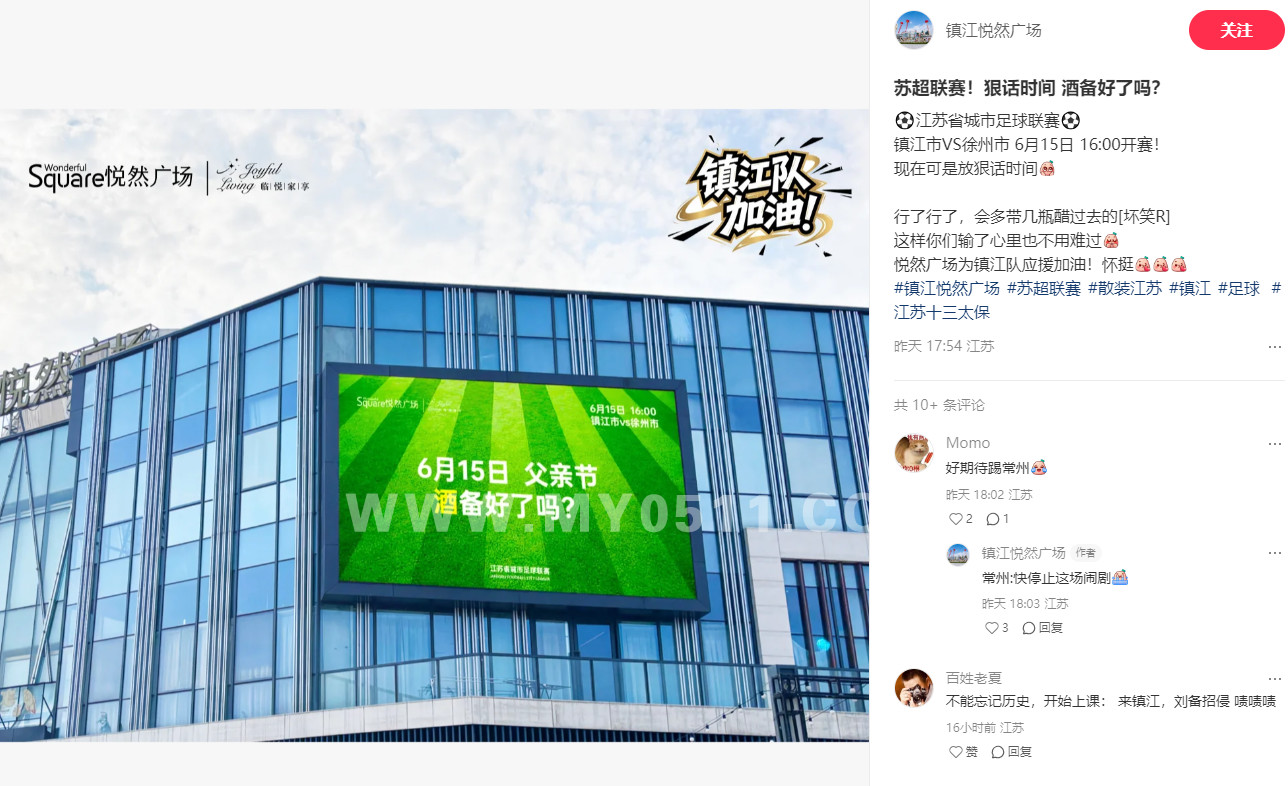 » 苏超镇江赛区吾悦广场大屏来了