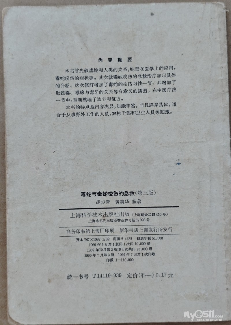 在书库翻出了毒蛇咬伤的防治书籍