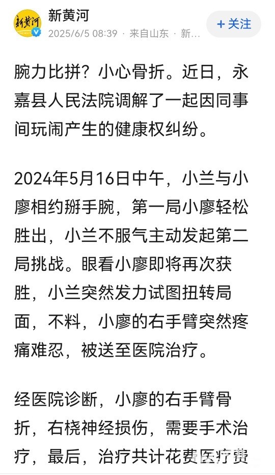 和同事掰手腕导致骨折,要赔偿吗?法院这样判