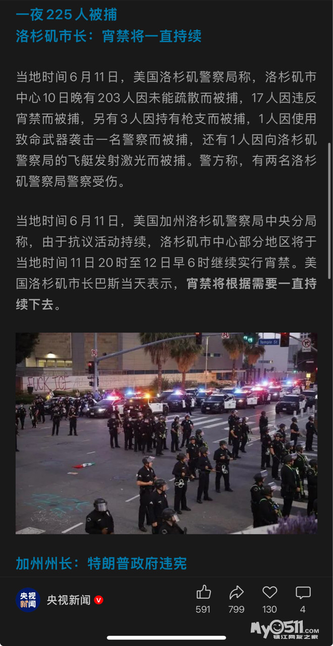 » 一夜225人被捕!美国洛杉矶延长宵禁措施
