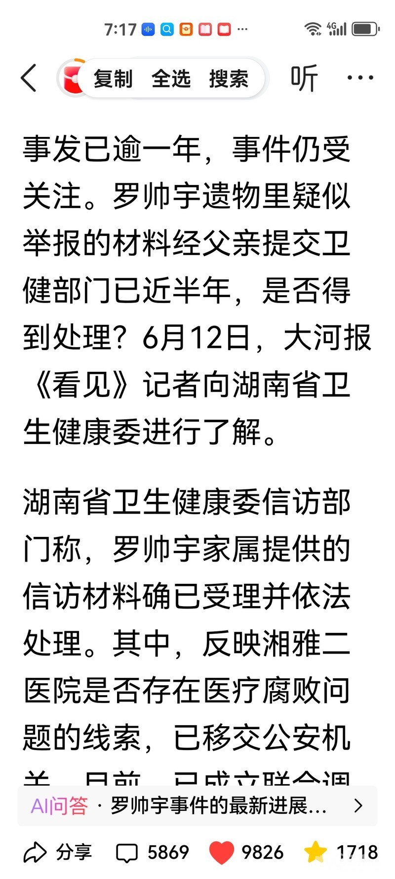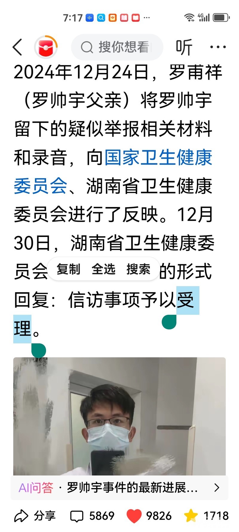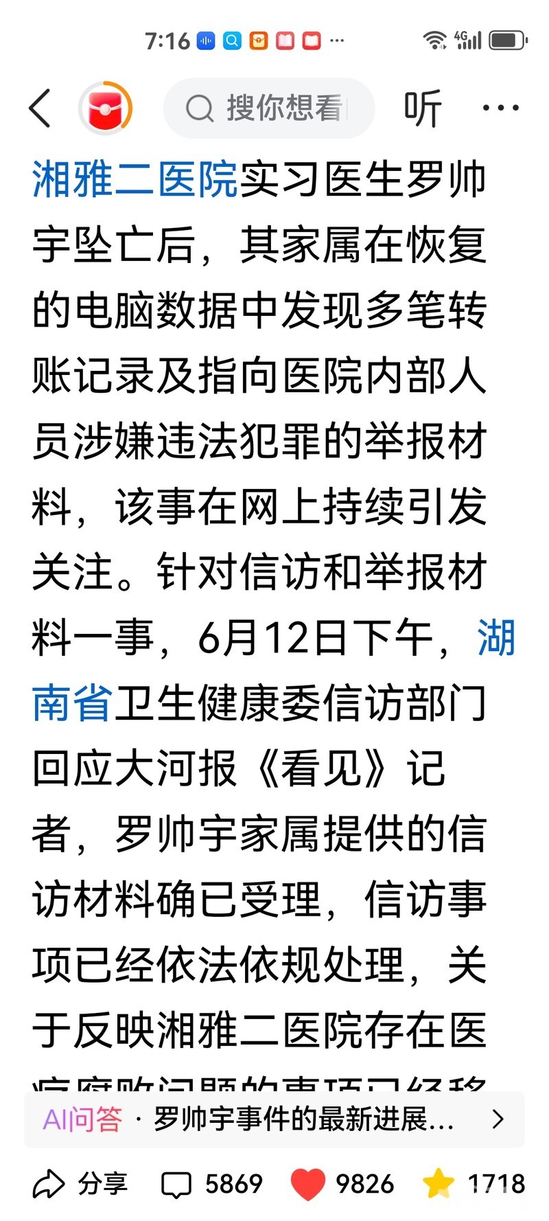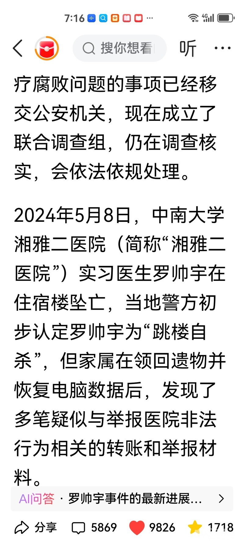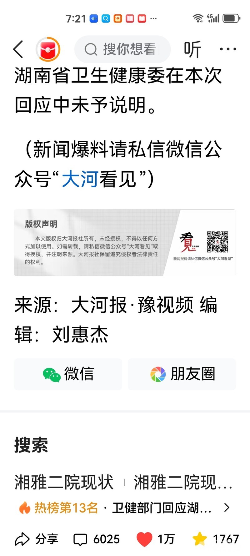 » 卫健部门回应湖南湘雅二院坠亡实习医生所涉举报材料:联合调查组调查中