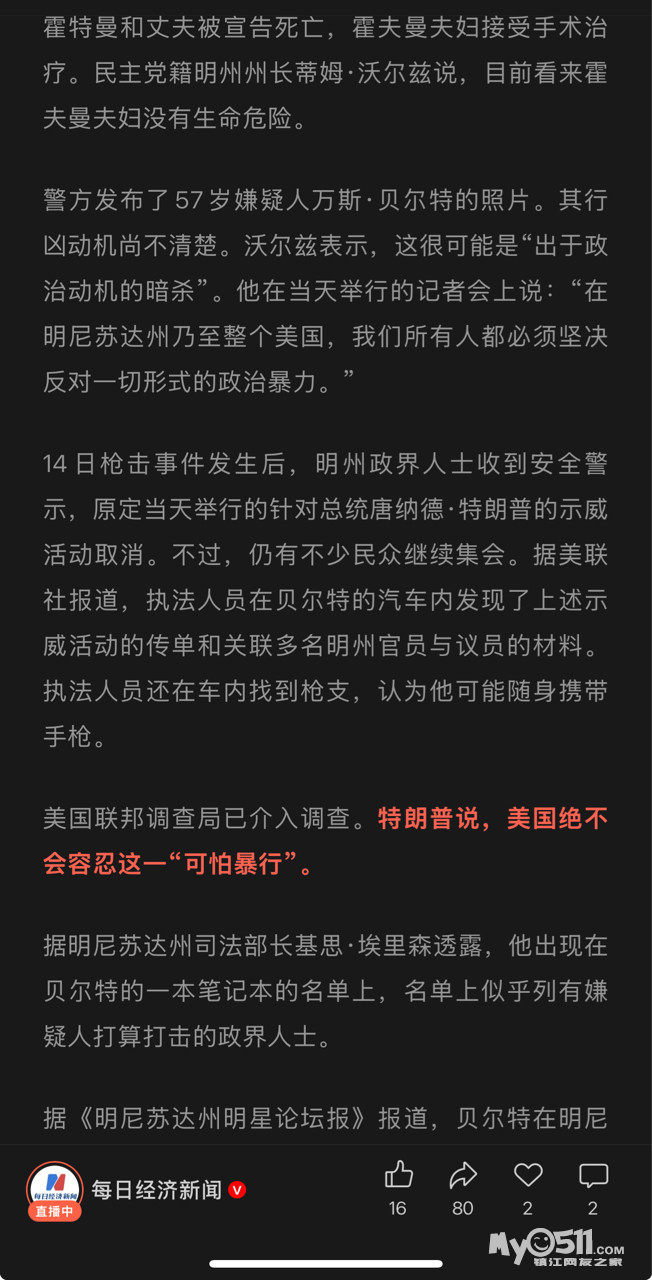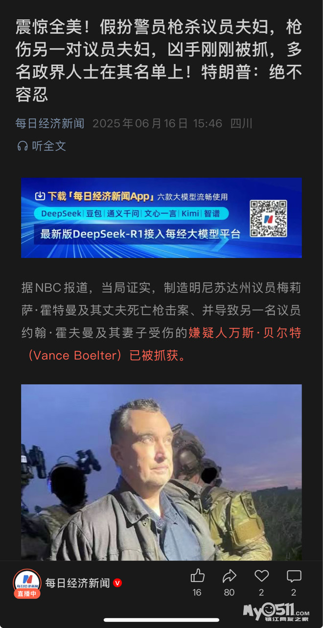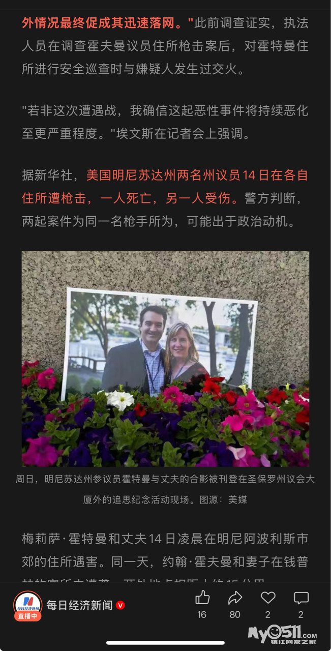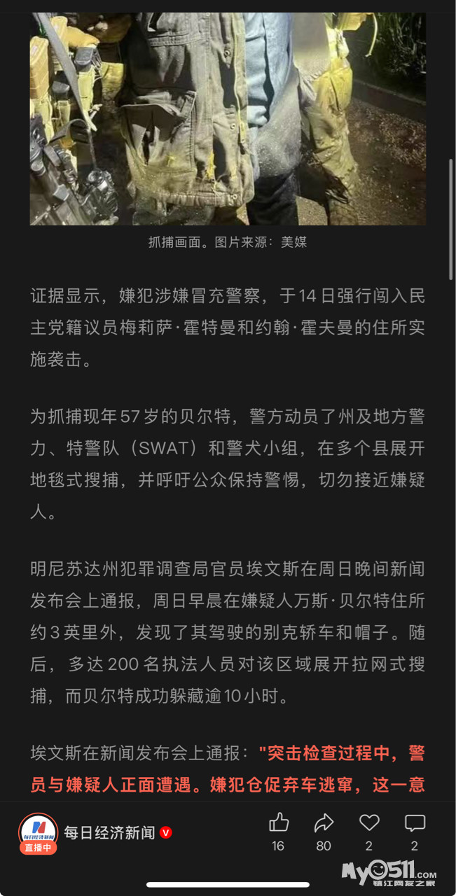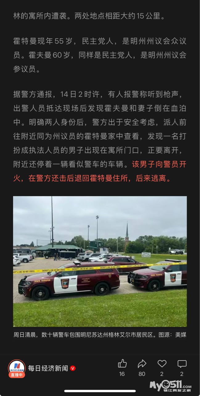 » 震惊全美!假扮警员枪杀议员夫妇,枪伤另一对议员夫妇,凶手刚刚被抓