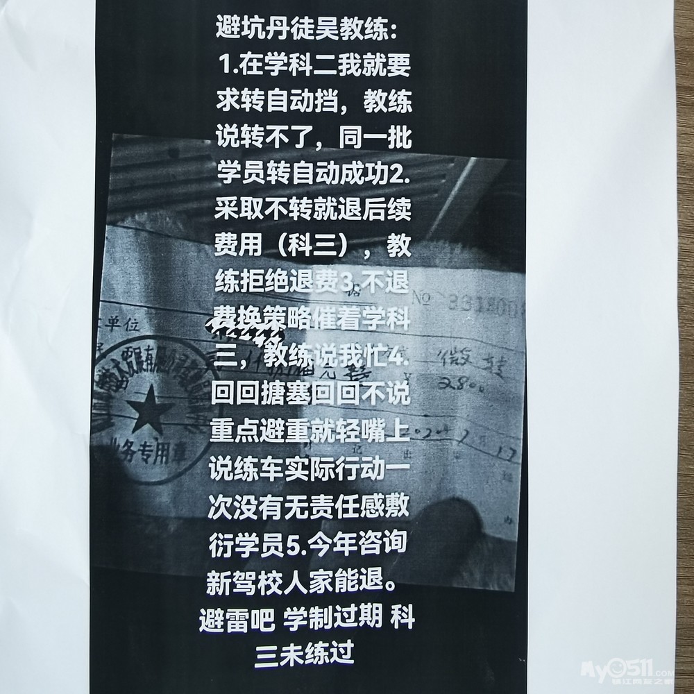 之前练车 科三没有学教练不肯退后续费用 有收据和转账记录,开始一直要求转自动挡拒绝,不转退科三费用不退,不退练车啊敷衍了事,导致后果他不用承担当然,教练无职业道德,练车摸学员手。