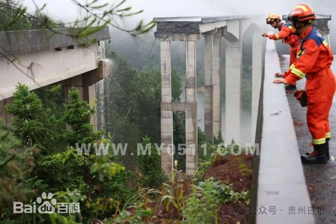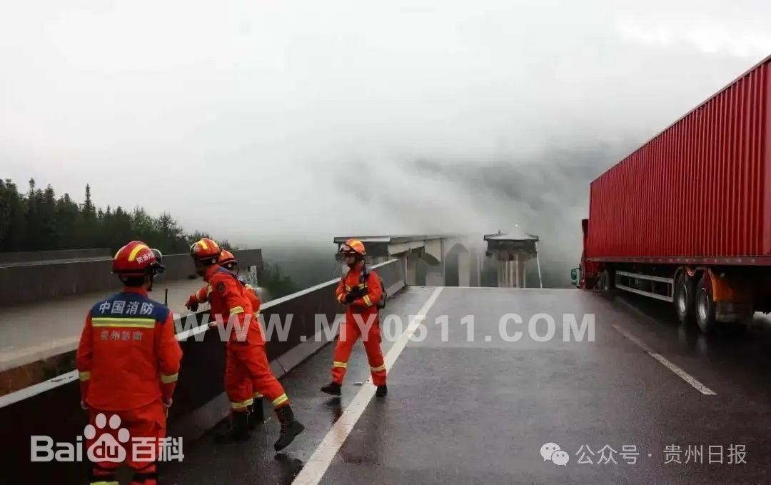 2025年6月24日7时40分许,G76厦蓉高速格都线广西至贵州都匀方向K1264处(贵州省三都县境内)猴子河特大桥,因持续强降雨诱发山体滑坡,导致引桥发生垮塌。经初步核实,桥梁垮塌时,桥上有一辆货车(车上人员已被救出),现场无人员伤亡。桥下有3台车辆,为附近村庄的施工车辆,通过无人机观测,车内无人员。 黔南州消防救援支队迅速调集23车89人赶赴现场,利用无人机反复侦察,确认受威胁群众范围。事发区域10户17人及临近村寨26户36人已全部安全转移安置。