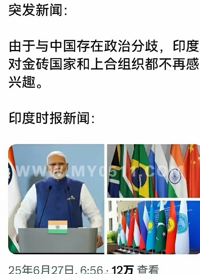 金砖国家先不说,我就不明白上合组织有什么立场接收印度进来?国防部长还能坐在一起开会?再看看另一个成员国——巴基斯坦!