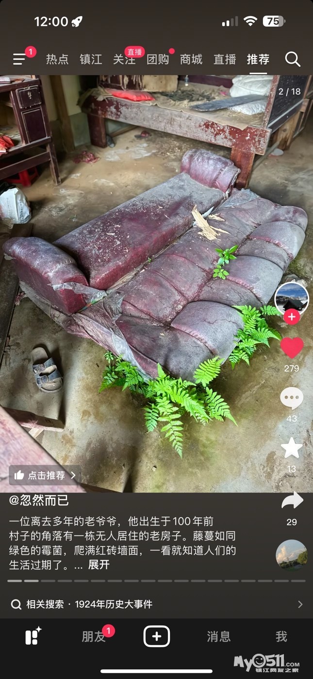 刷到一视频,一个坍塌的老房子,一个发霉的床和沙发…