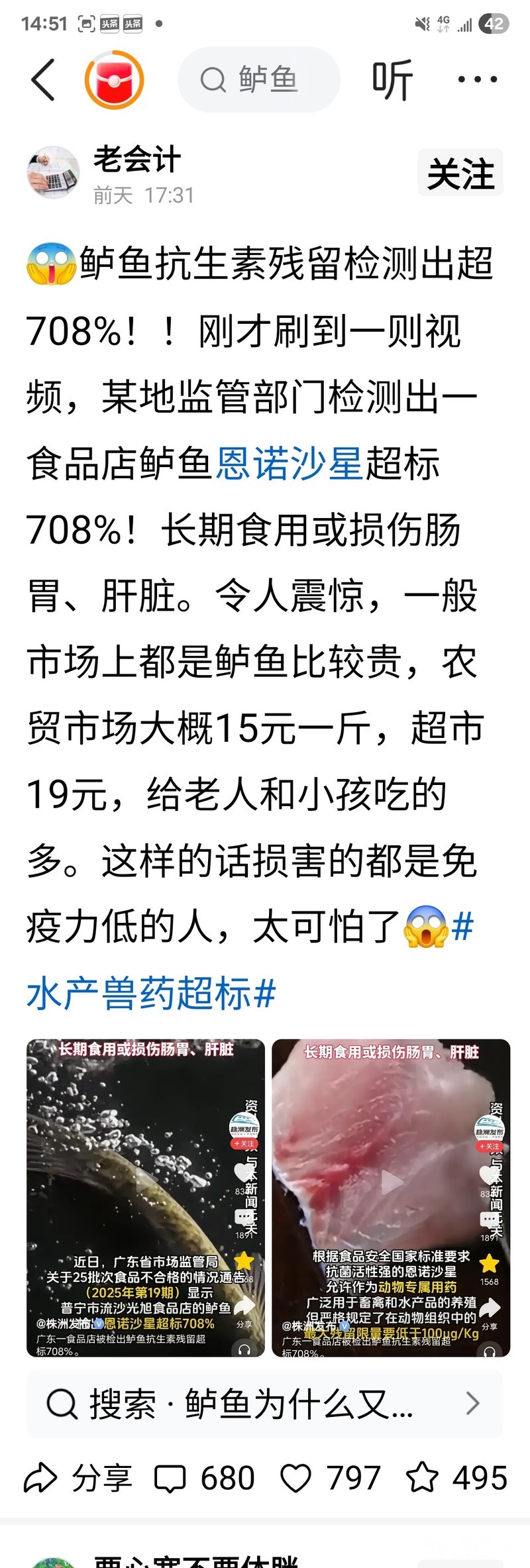 » 鲈鱼抗生素残留检测出超708%!长期吃受害不浅