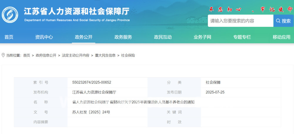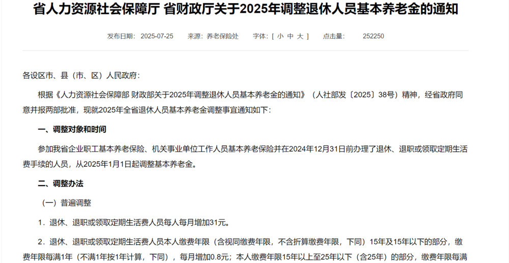 » 省人力资源社会保障厅 省财政厅关于2025年调整退休人员基本养老金的通知