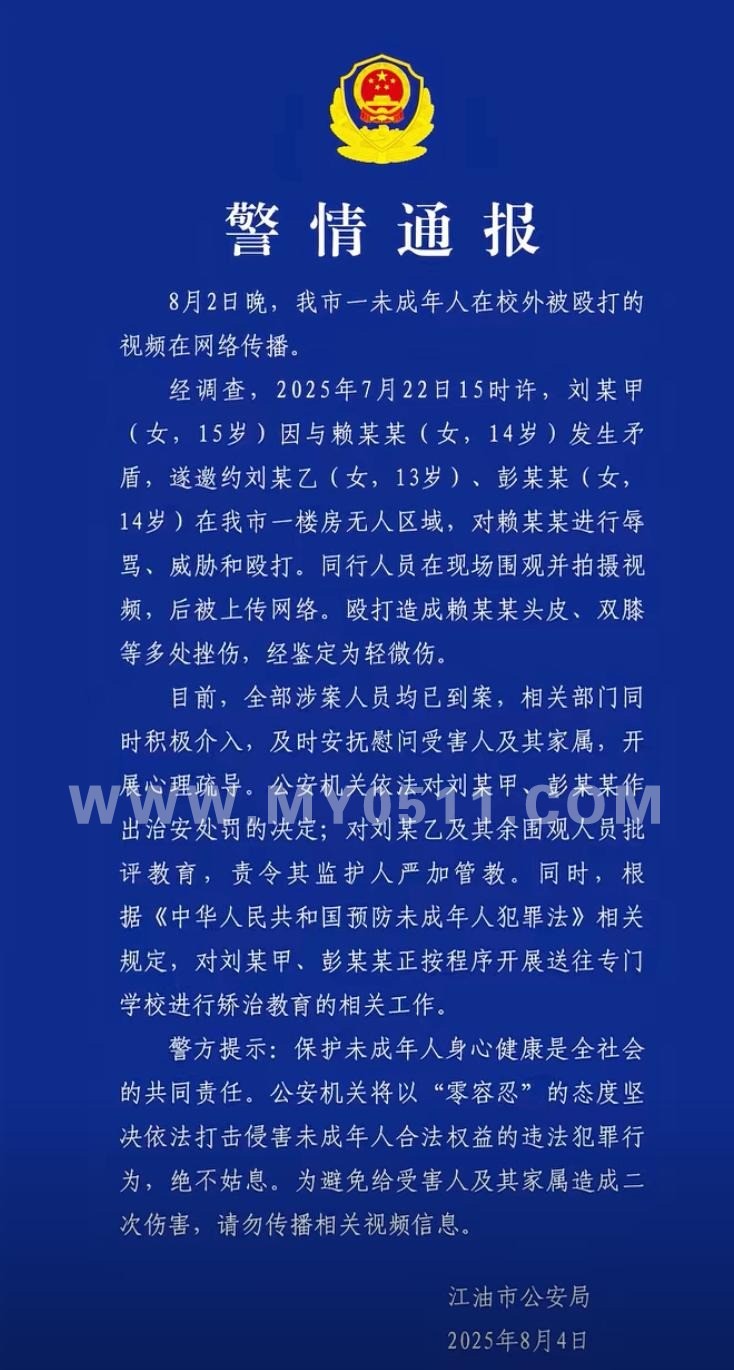 四川江油警方辟谣“校园霸凌者父母被抓”,此前通报称已处理涉霸凌事件