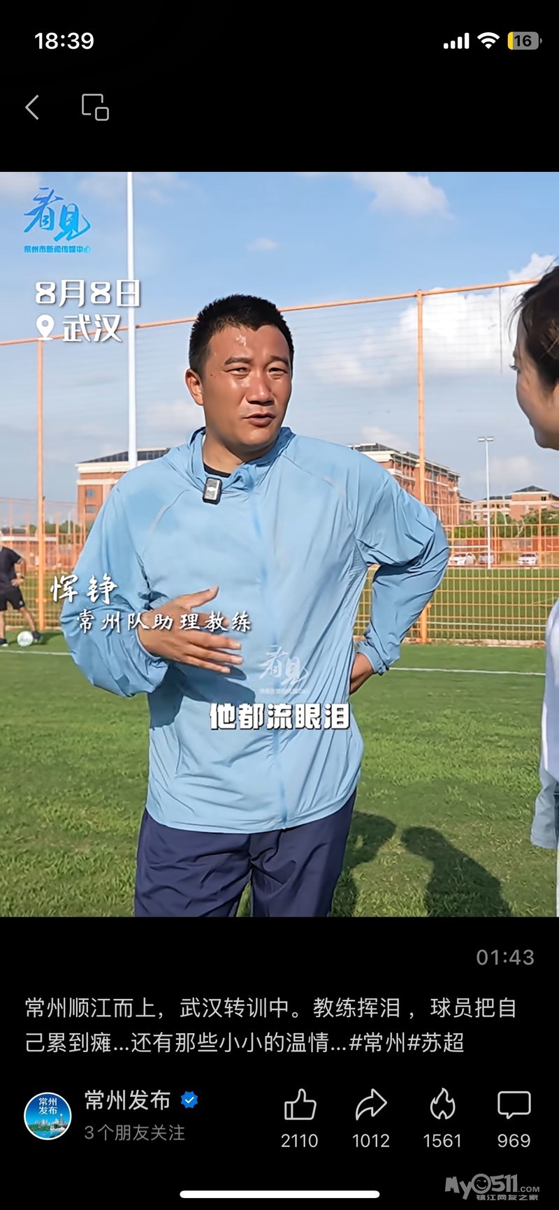 常州发布看见常州队在武汉集训视频,希望也发一下自镇江队集训视频吧!下面评论都有人说常州会赢镇江!