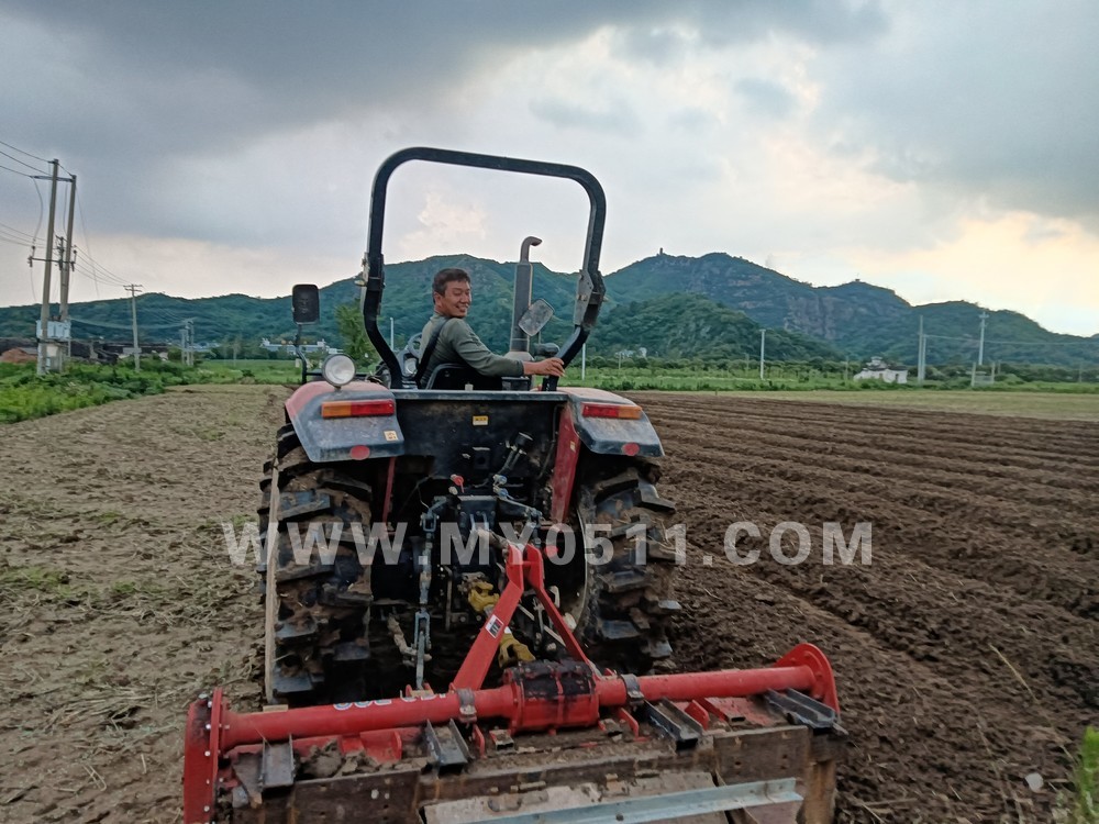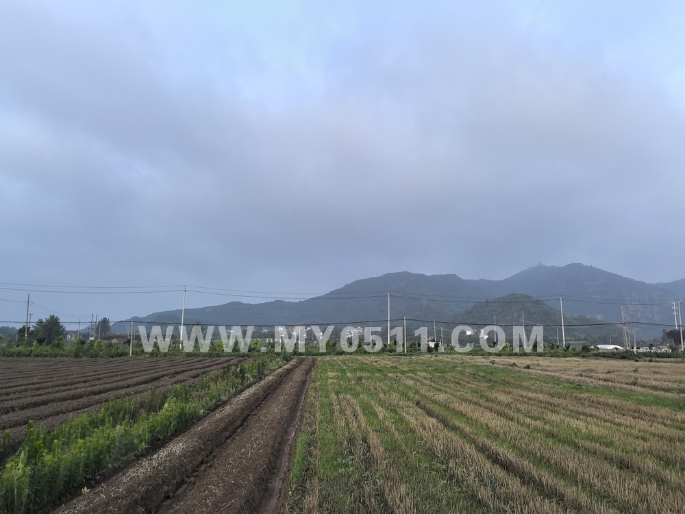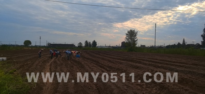 2025/8/9晨曦中贻榖堂旁的地块机械耕地打碎,下足猪粪为基肥,再起垄。天刚亮,工人们踏着晨曦,下地点种土豆。