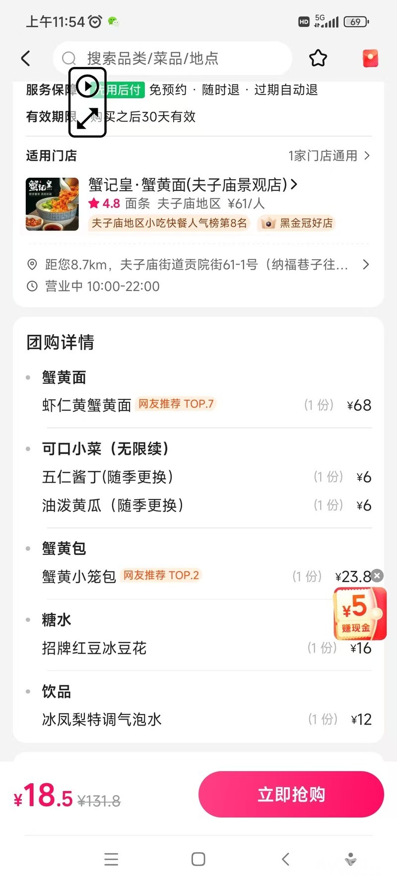 啥意思啊?你这个套餐到时候只要18块5吗?前几天跟我女儿在南京路步行街那边吃的早饭,蟹黄汤包加一碗拌面。有一个什么小菜来着,两个人吃了80多块