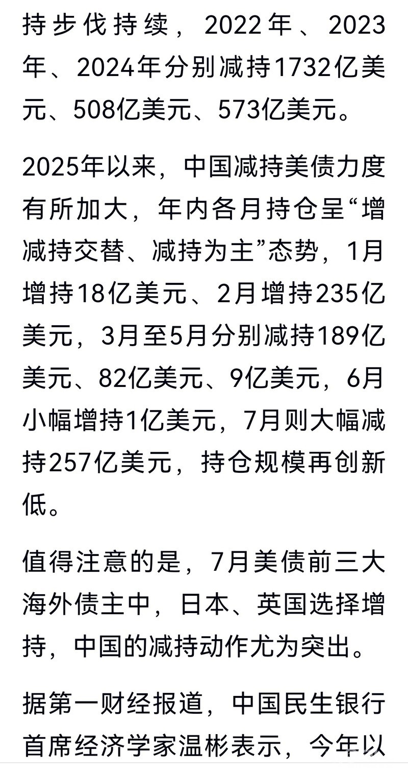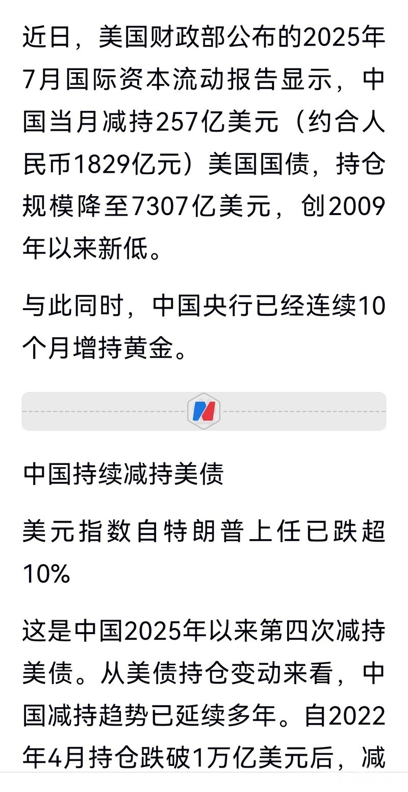 » 最新披露:中国大规模减持美债一个月抛了超1800亿元!央行已连续10个月买入黄金