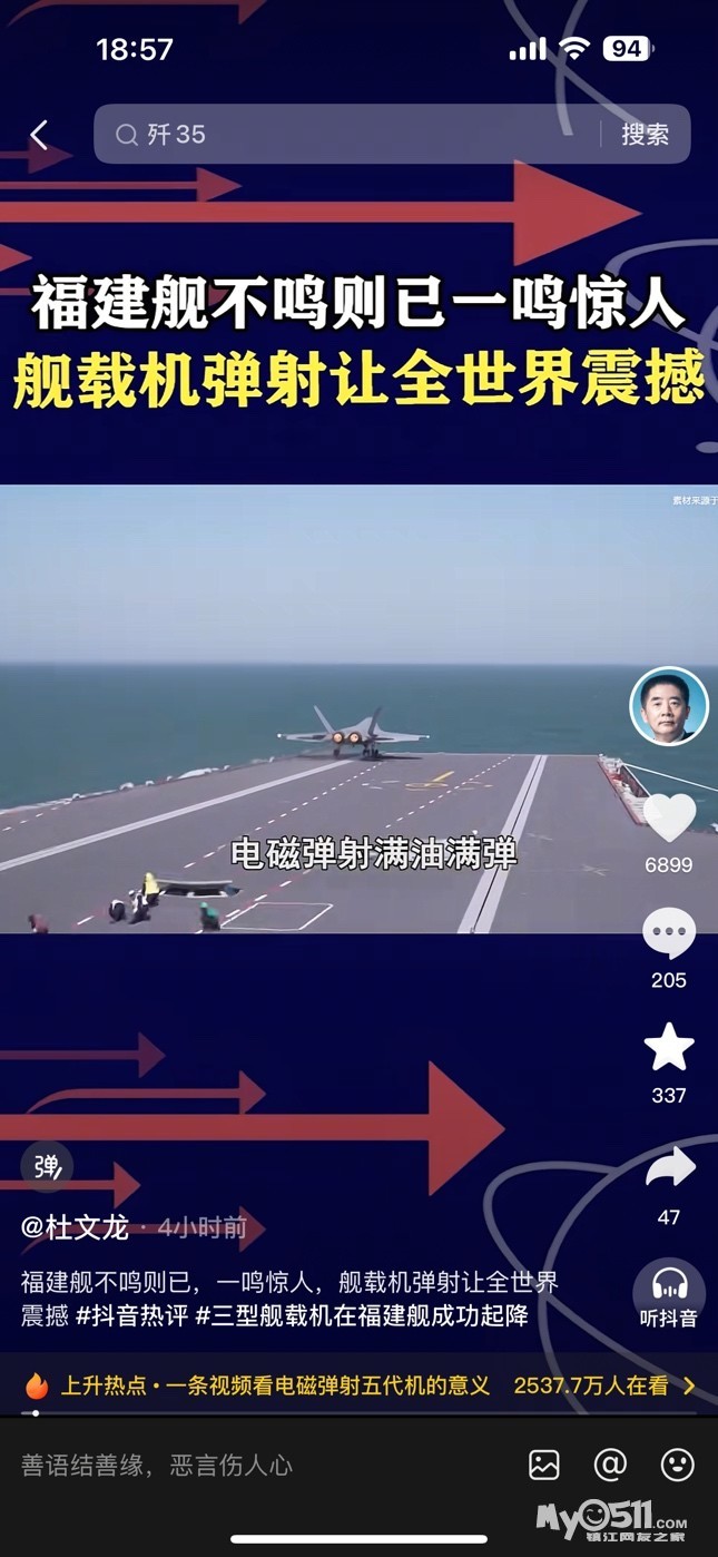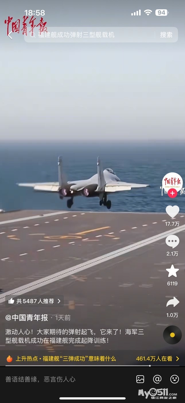 » 福建舰弹飞机成功!牛!