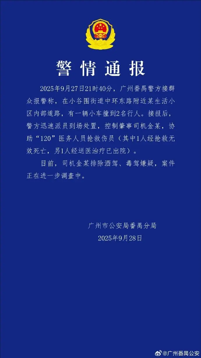 9月27日晚,华南理工大学广州大学城校区发生一起交通事故。据警方通报,事故造成1死1伤,肇事司机金某已被控制,排除酒驾、毒驾嫌疑,案件正在进一步调查。