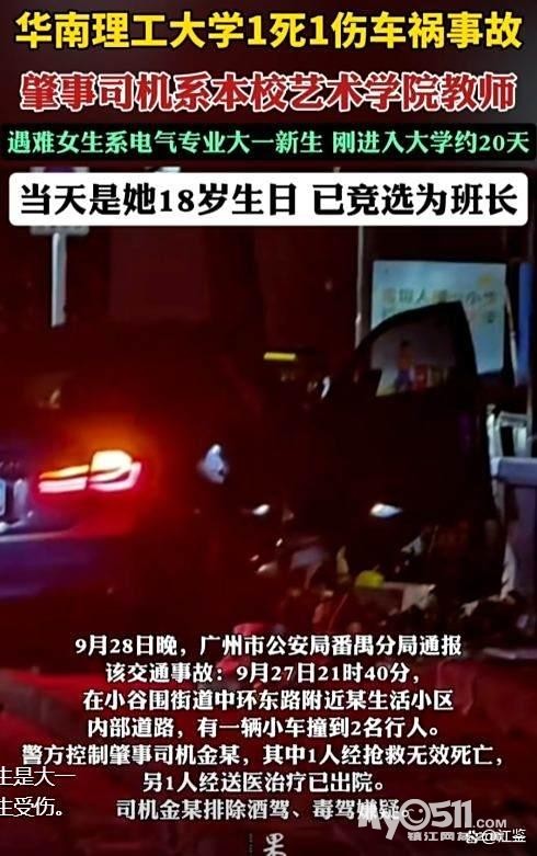 9月29日,网上铺天盖地的报道了一则噩耗,华南理工大学一名男老师在校内开车发生车祸,导致一死一伤。去世的是18岁的女学生,还是个极其优秀的学霸。