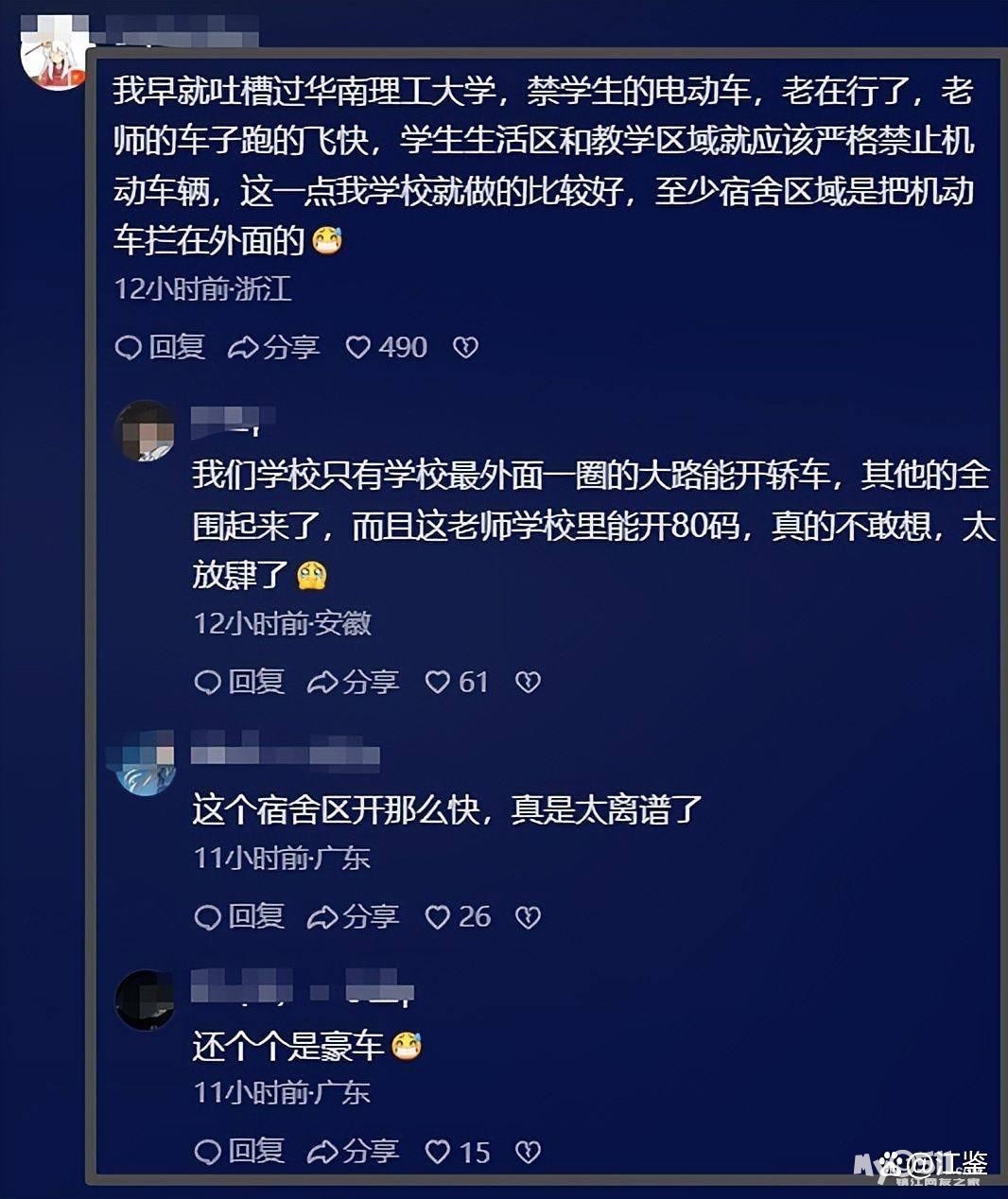 其实很早之前就有不少人吐槽,华南理工大学是双一流重点大学,应该有更严谨的校内规定,可学校只是禁了学生的电动车,却没有禁老师们的私家车,甚至让他们开进生活区,才发生了这种悲剧。