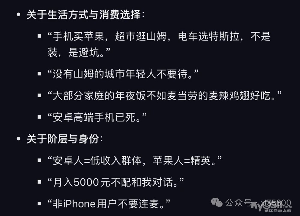 9月30日,“浙江宣传”发布评论写道:要纠正“苹果人”与“安卓人”带来的认知扭曲,关键在于压实网络平台的主体责任,不能让标签化的撕裂成为暴力起号、流量变现的路径依赖。唯有让制造对立者无利可图、寸步难行,才能从根本上引导内容创作回归理性与真诚,共同守护清朗有序的网络空间。