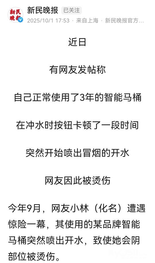 » 女子上厕所被烫到尖叫弹起,医院诊断为二度烧伤!很多上海人家里都在用