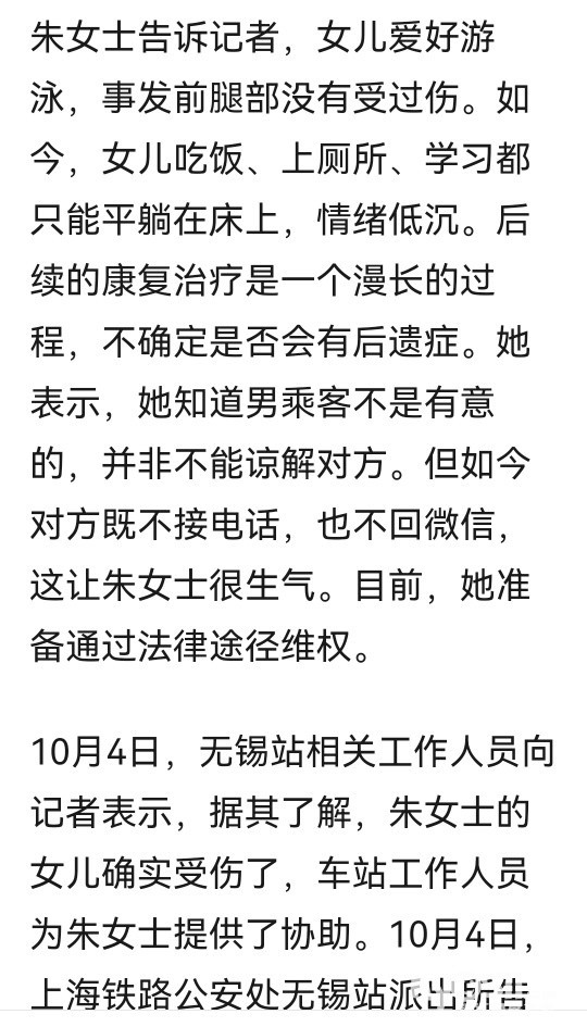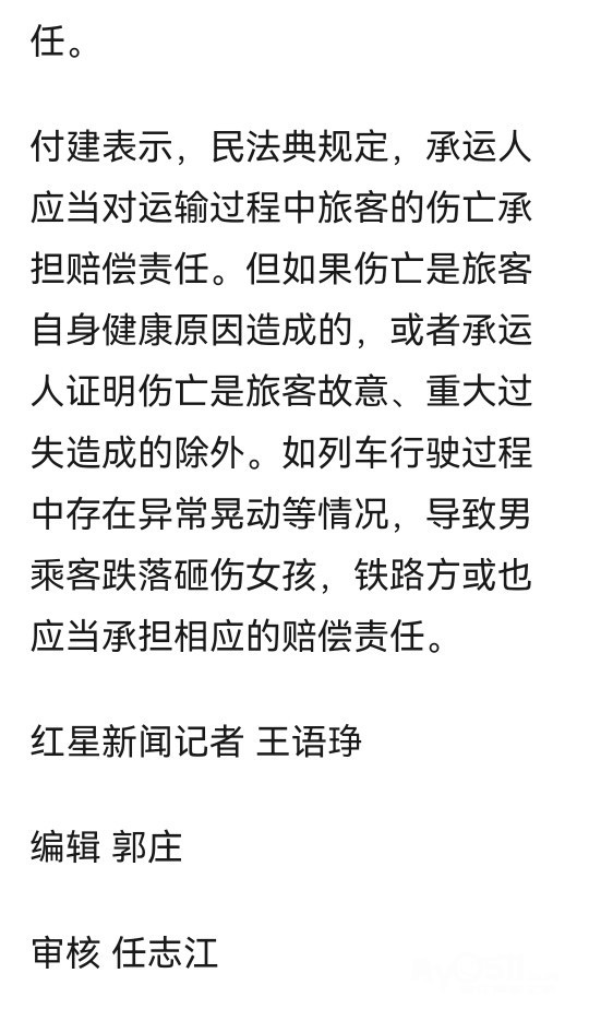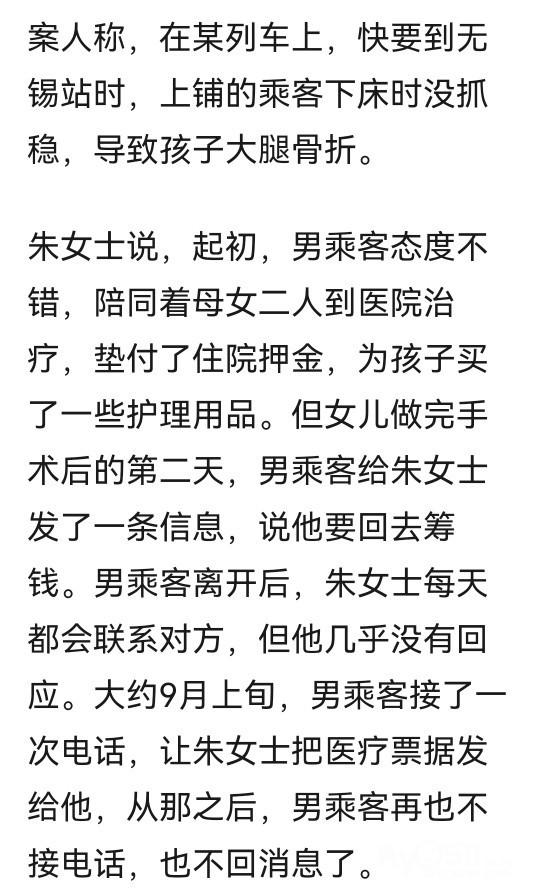 » 男乘客从列车上铺跌落砸伤10岁女孩致骨折,女孩母亲:他失去联系将通过法律程序维权