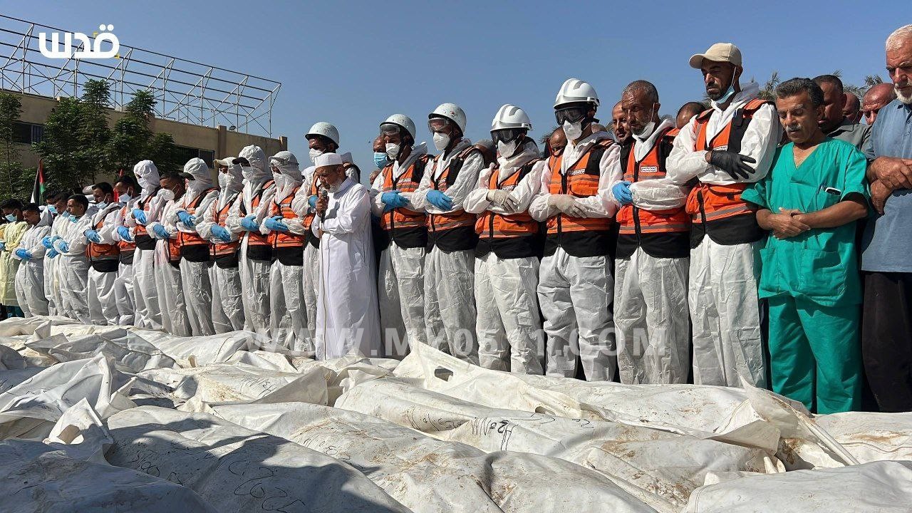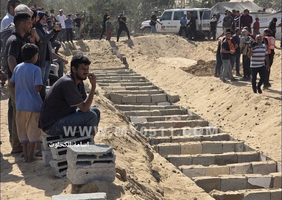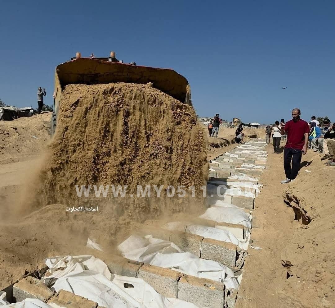 加沙集体埋葬无法辨认的哈马斯尸体,这尸体些是以色列交还的
