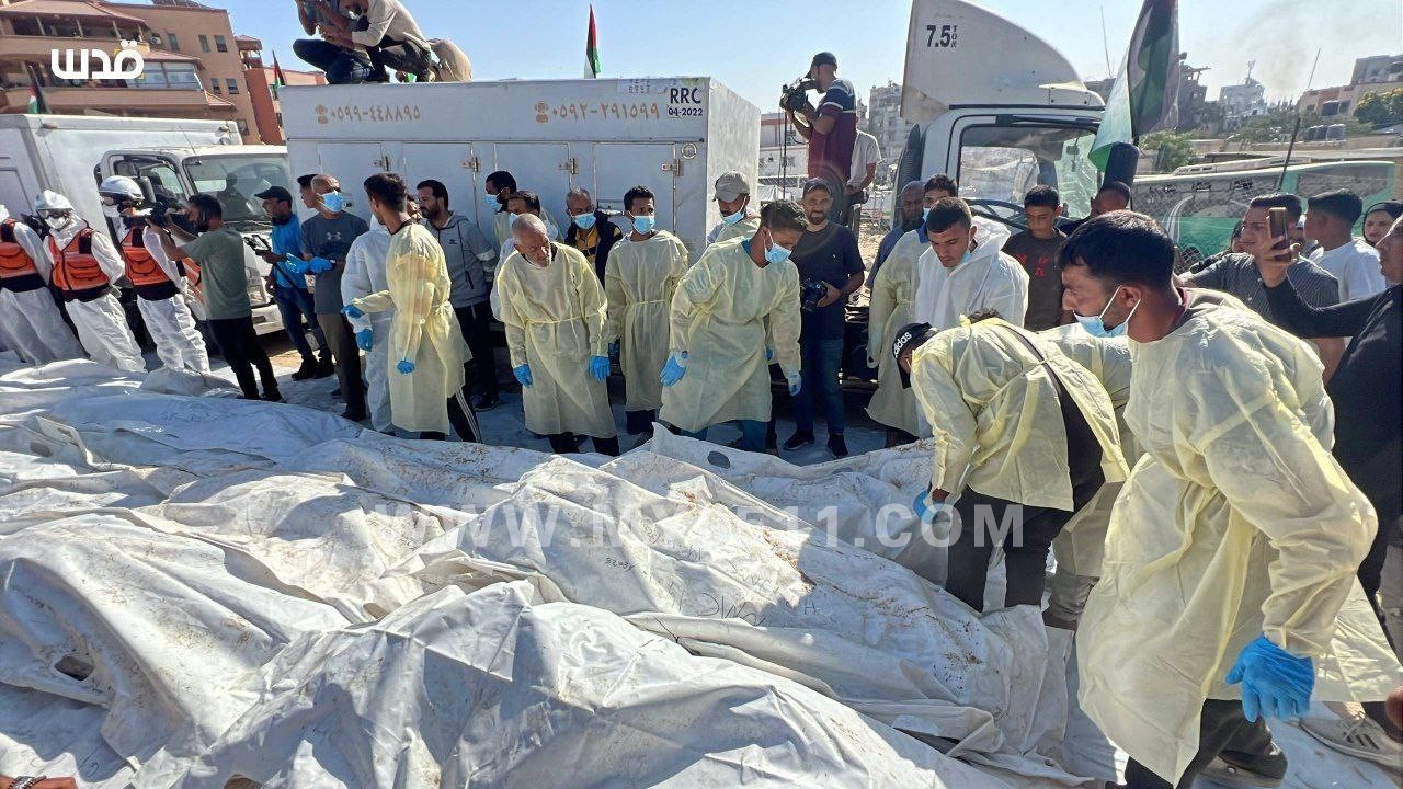 巴勒斯坦人报告说,过去一周内从以色列运回的 54 具尸体尚未确定身份,今天已被运来埋葬。