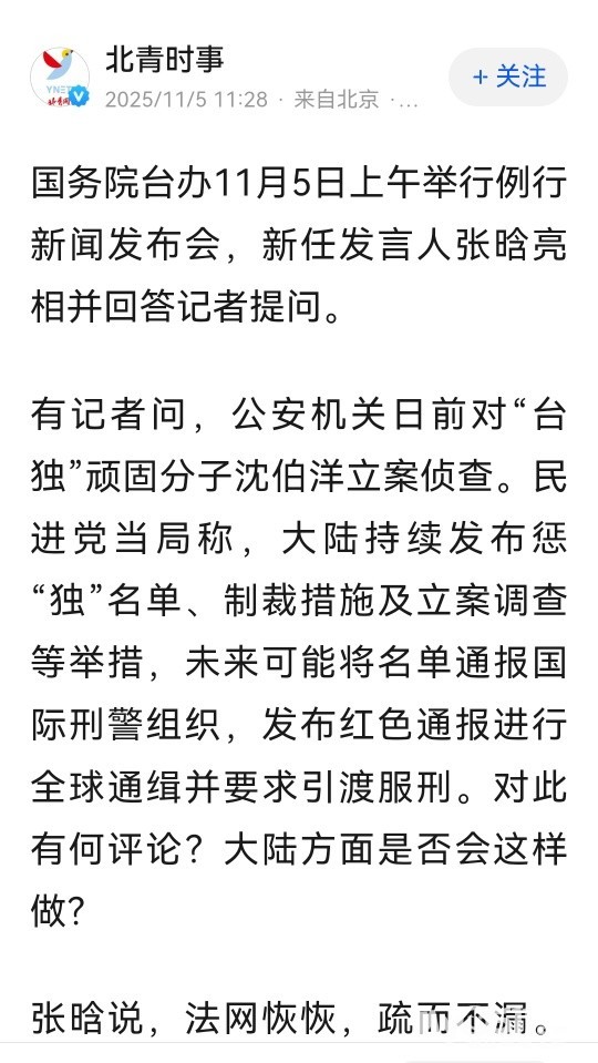 民进党当局称,大陆可能将惩“独”名单通报国际刑警组织进行全球通缉,国台办回应