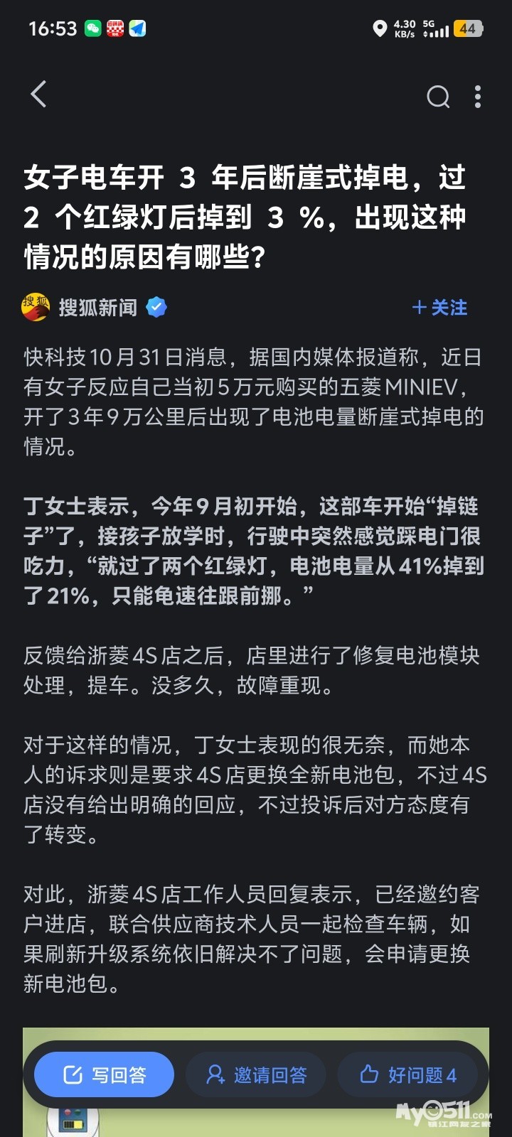» 女子电车开 3 年后断崖式掉电,过 2 个红绿灯后掉到 3 %