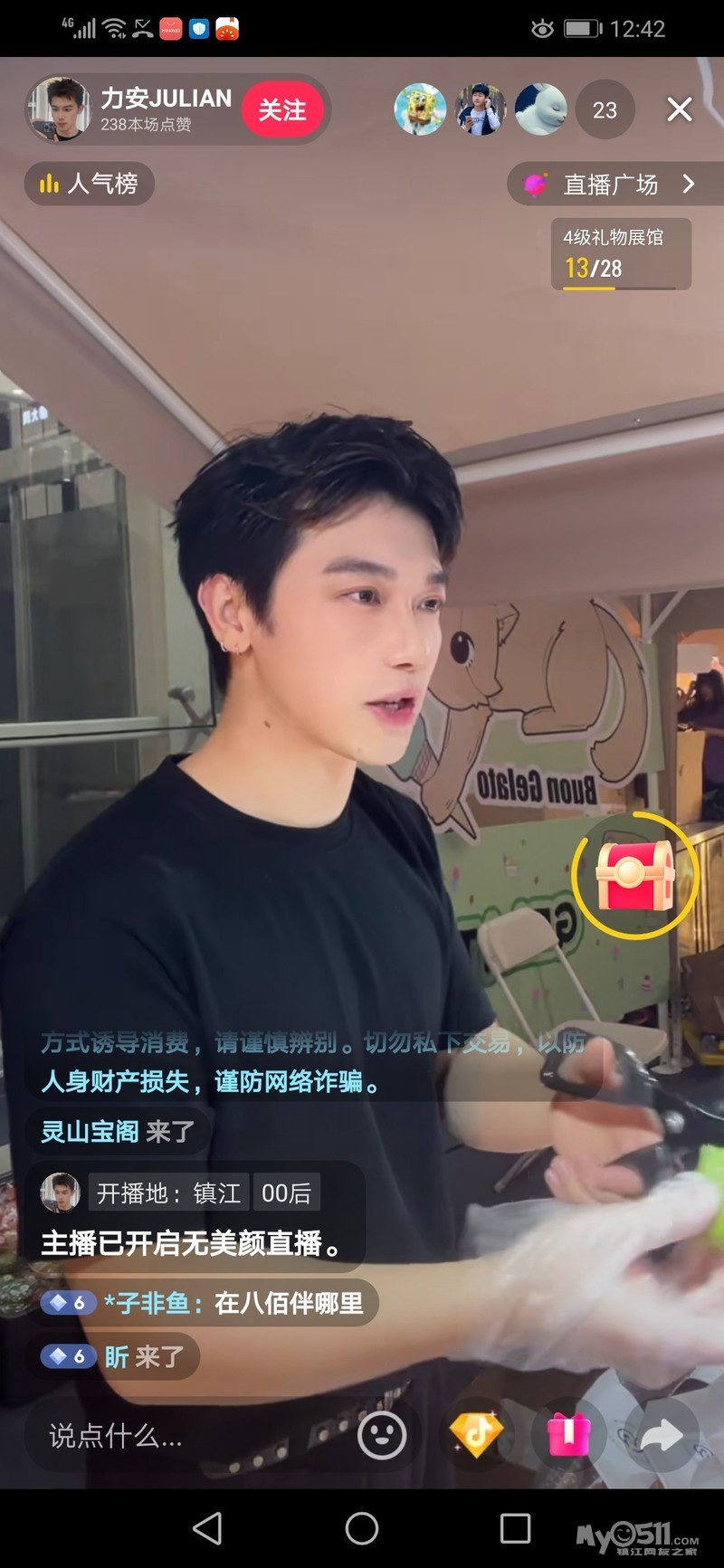 刚刷到的八佰伴烘培面包节,看看人家卖烘培面包的小伙子多么的阳光帅气啊,虽然开了美颜,可五官还是精致啦! 就和扬州卖文创的漂亮小姐姐,顾客购买的产品可是有颜值溢价啦!