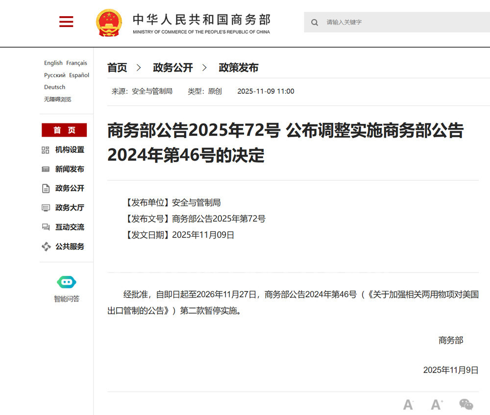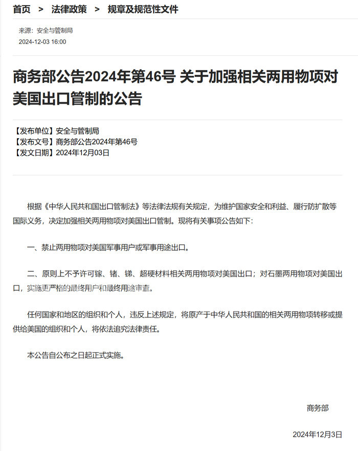 » 暂停实施对美国出口特定材料的禁令