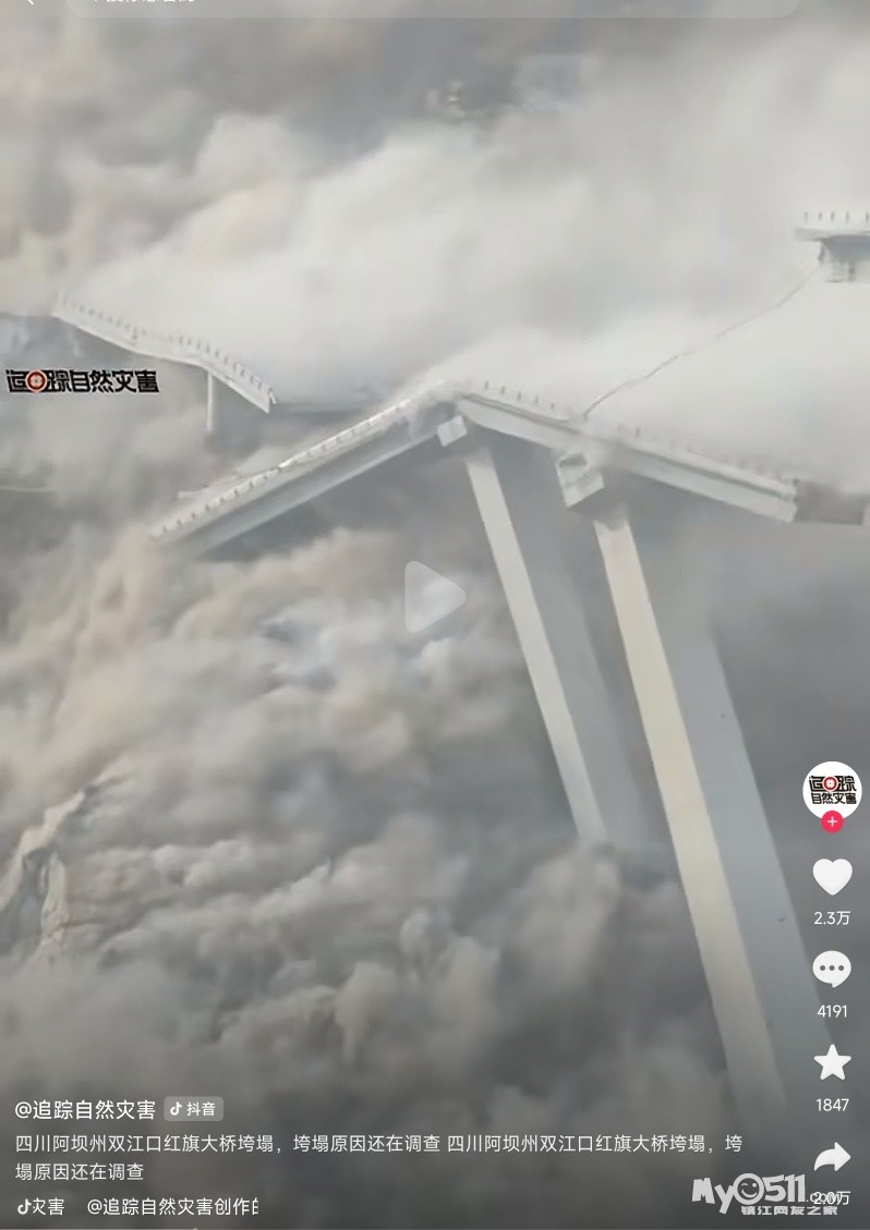 » 现场画面震撼!阿坝州红旗桥垮塌,初步判断三体滑坡所致。