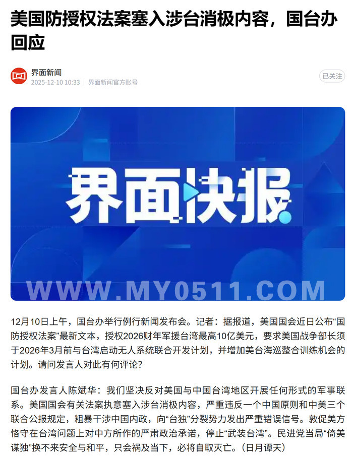 不要想这些了,目光请放在马上特朗普会不会签署新版《国防授权法》,里面有看起来很敏感的条款,看看特朗普会不会签。例如——