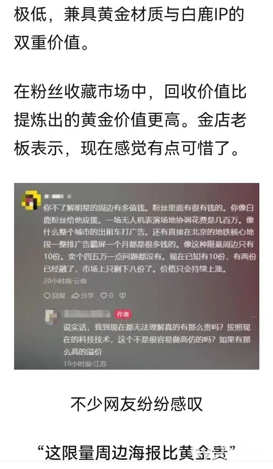 江苏一男子意外抽中“白鹿足金黄金海报”,熔出近10g金豆