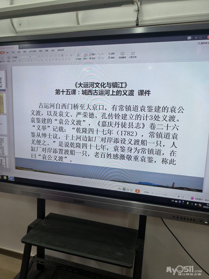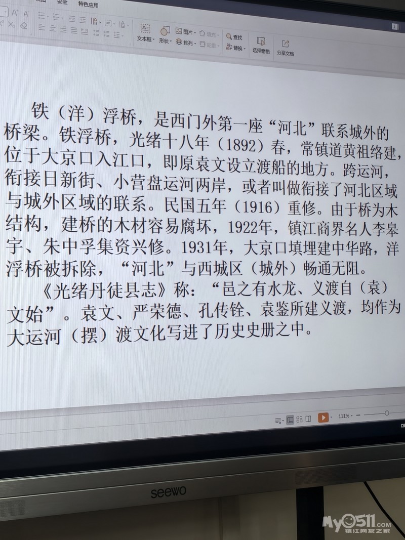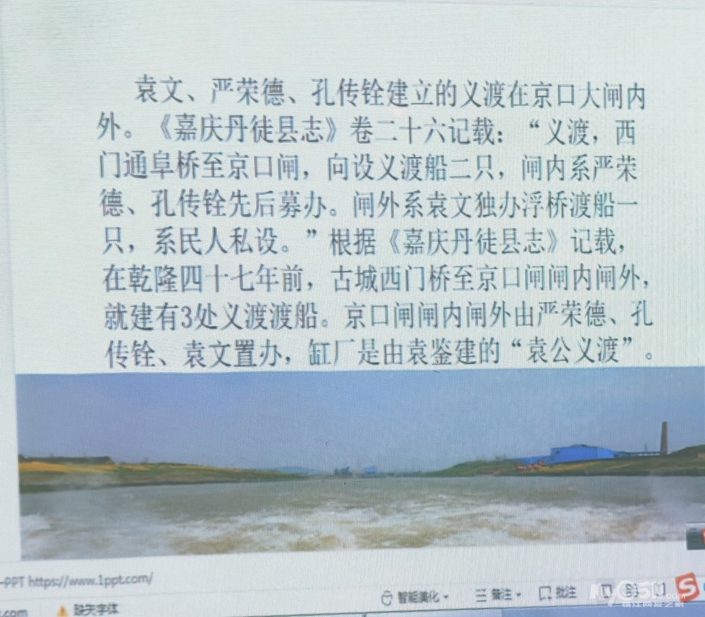 在镇江古运河迎江桥旁边不远处,有一组雕塑,叫袁公义渡。这周的运河文化课上,王礼刚老师讲的就是这个古渡。下面是课件,我拍下来再扫描下来的,方便网友看。王老师在2022年在《镇江日报》上刊登过袁公义渡的文章,这个课件是文章其中的一部分。这个义渡的作用结束的时间,是为了建迎江桥,先是渡船的艄公没有了,弄了一个绳子拴在两岸,上了船拉着绳子就可以往来了,再是建了土坝挡住江(河)水,方便建桥,1973建成了“迎江桥”。刚建成人们称之为“新桥”,不久命名为“迎江桥”。