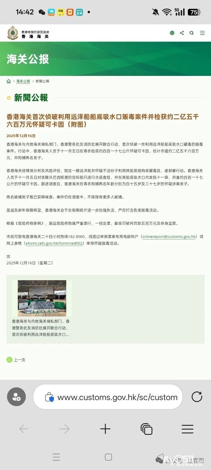 » 两印度人在香港海关被检获417公斤可卡因,目前被取保释放