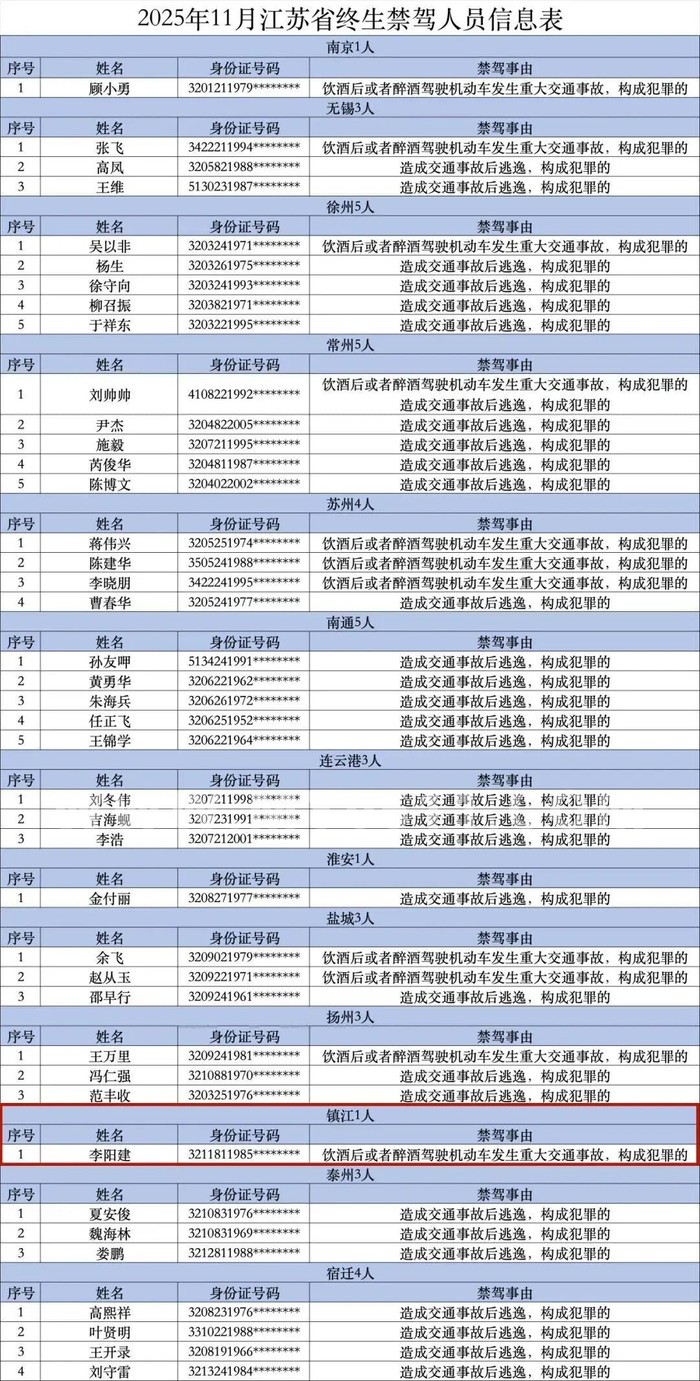 2025年11月终生禁驾人员信息表