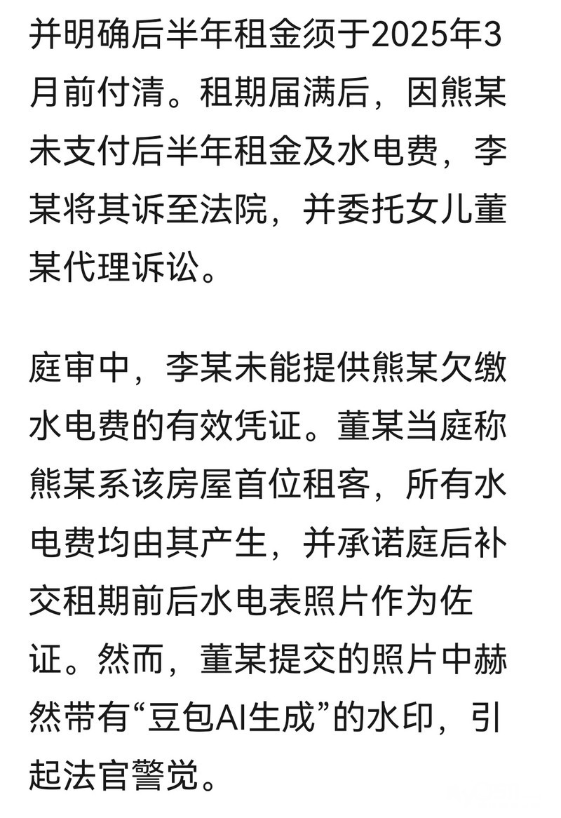 离谱!女子把豆包生成的照片当证据给了法官
