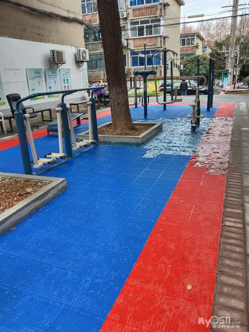 塑胶垫是为了大家运动时防滑减震,保护老人和孩子的安全,新设施刚投入使用就被损坏,实在可惜。