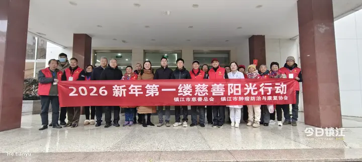 2026-01-01 19:23今日镇江讯(怀天禾)今天是2026年新年第一天,上午9时,“新年第一缕慈善阳光行动”在镇江市第一人民医院的肿瘤病区温情启幕。市慈善总会副会长迟永普,市卫健委副主任殷猛,市第一人民医院副院长石春和、濮勇,市肿瘤防治与康复协会会长秦蓉以及癌症康复志愿者们齐聚一堂,共同为在院治疗的肿瘤患者送上新年的诚挚关怀与美好祝福。