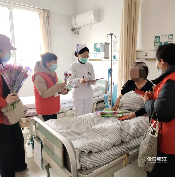 岁岁年年初心不改,缕缕阳光情暖人心。本次行动中,爱心的暖流同步涌向全市多家医疗机构,镇江市肿瘤防治与康复协会的癌症康复志愿者们兵分多路,除市一院外还奔赴江苏大学附属医院、市二院、市四院、市中医院等定点医院,共为238名肿瘤患者送去同样的温暖与慰问——一份份“新年礼包”送到每位患者的手中,其中包括一封字字暖心的新年慰问信,一支香气馥郁的康乃馨,一本实用的癌症康复杂志,一只沉甸甸的“压岁红包”,它们凝积着关爱、帮扶和希望。