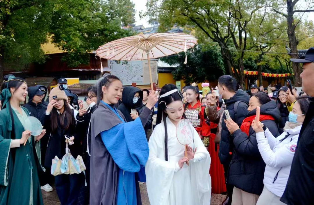 同一时间,焦山景区的国风音乐演出准时奏响,琴声与江风相和;北固山景区的“三国”主题巡游和互动体验也吸引不少游客参与;南山景区内,市民游客踏雪赏景,在冬日山林中感受节日的宁静。