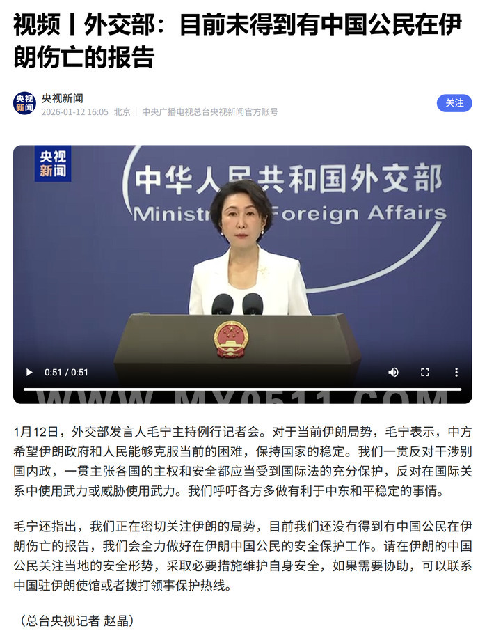 » 外交部:中方希望伊朗政府和人民能够克服当前困难,保持国家稳定