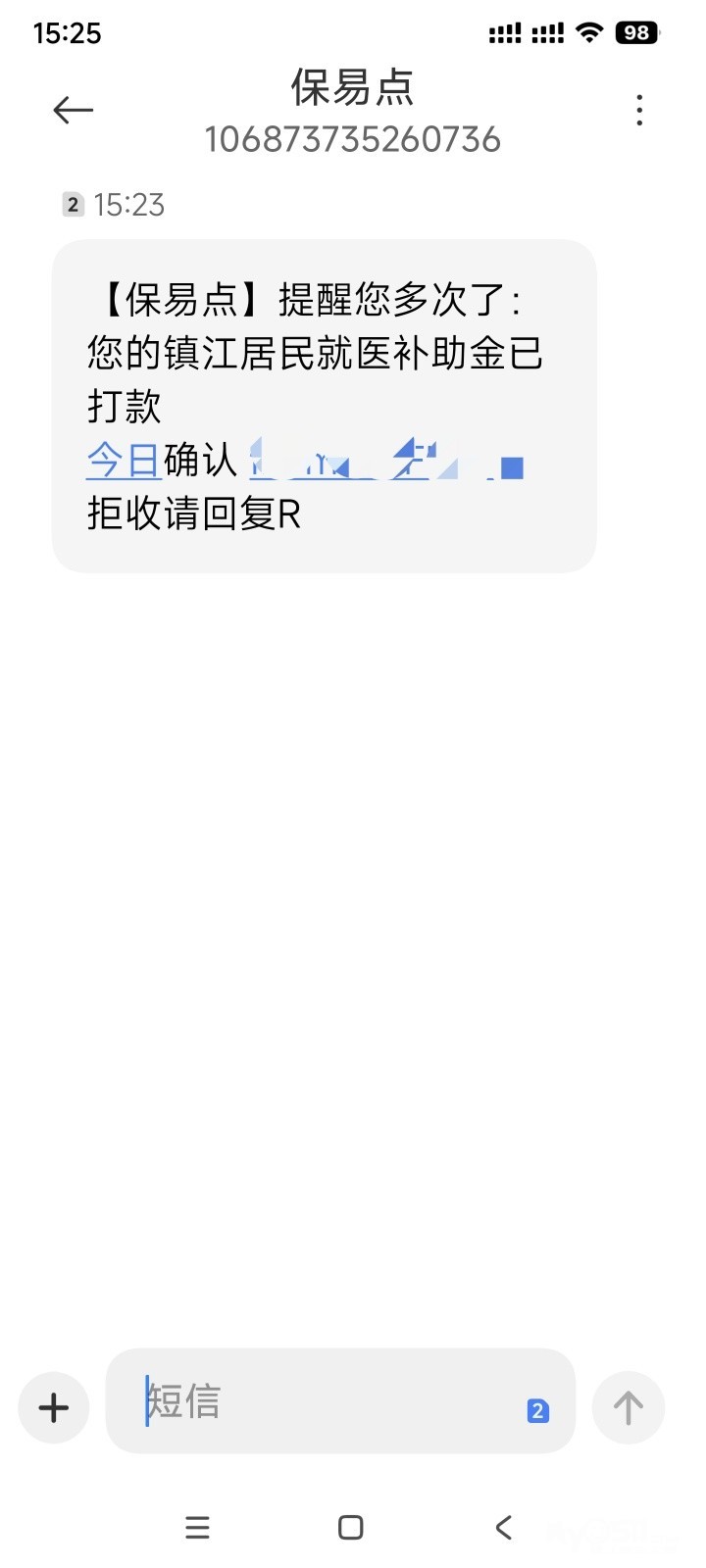 接到10100108陌生电话。大意说医保外可免费报销,机会难得,点以下短信链接。友情提醒一下大家!