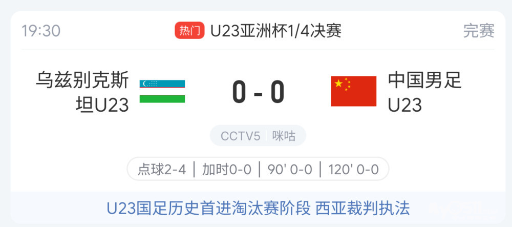 » U23男足亚洲杯,中国队点球大战4:2击败乌兹别克斯坦晋级四强!