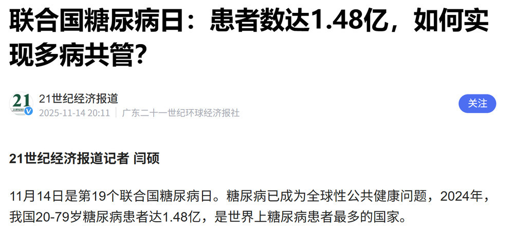 这个也是没办法的,有没有2.33亿不知道,但是国际糖尿病联盟(IDF)的中国数据是1.48亿。