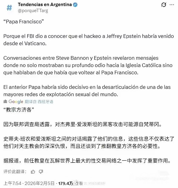 可能是爱泼斯坦的手段太过了教皇看不下去了吧