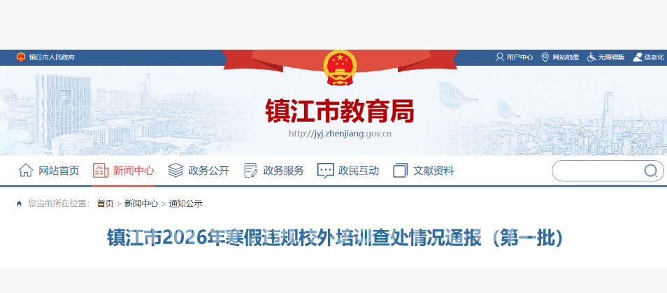 百姓话题  >  [焦点话题] 镇江市2026年寒假违规校外培训查处情况通报!多家培训机构被查处!